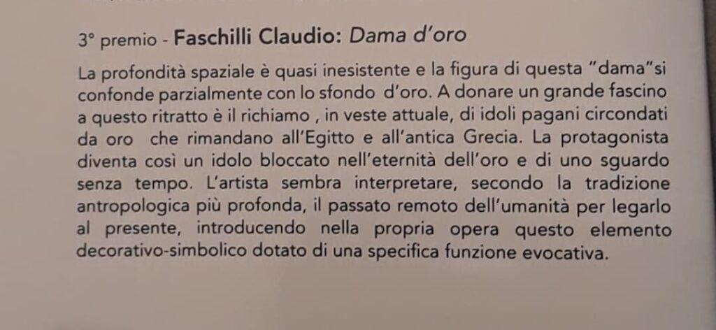 Il quadro “Dama d’oro” è risultato vincitore del terzo premio per le opere a tema libero.
